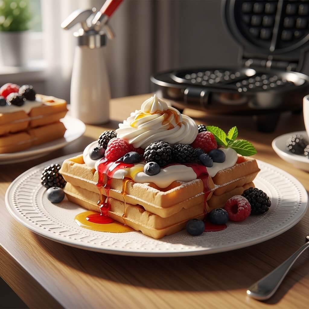 🫐 6. Berry‑Topped Waffles With Whipped Cream