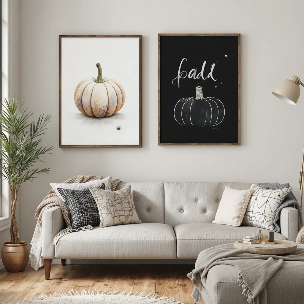 If you’re into subtle vibes, pumpkin-themed wall art is where it’s at. You can find prints that lean more rustic or ones that feel sleek and modern.