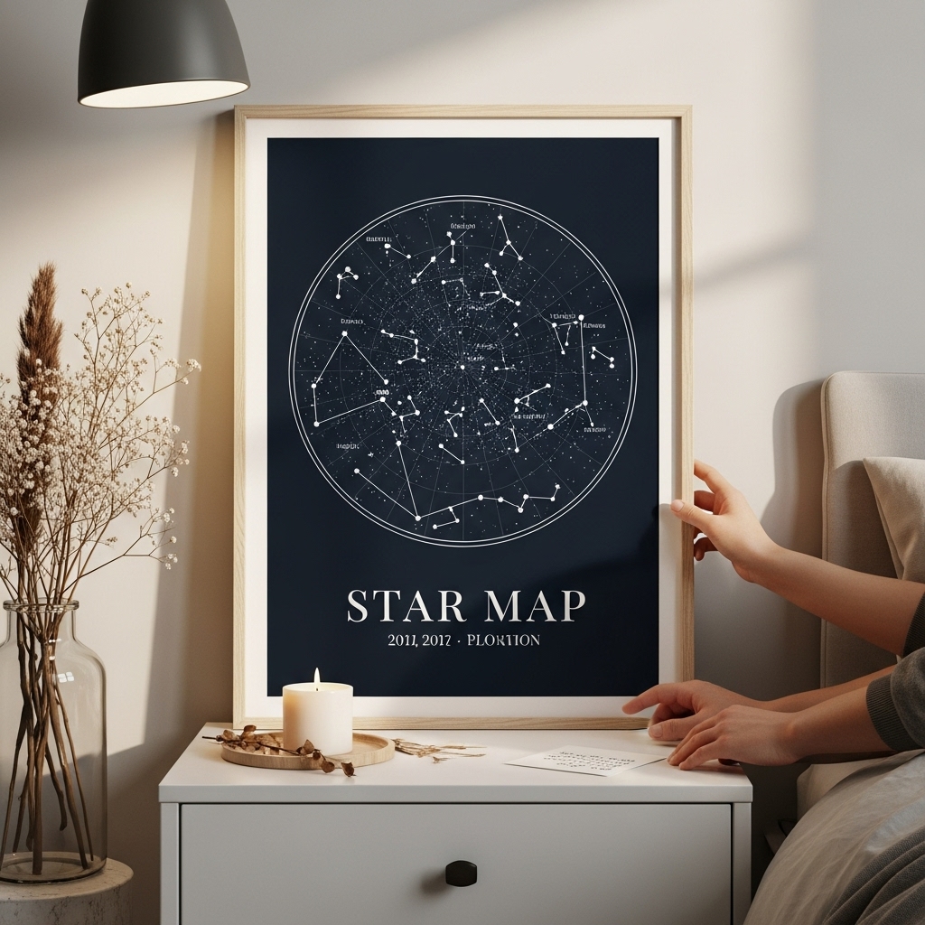 A star map shows how the sky looked on the night you met, your first kiss, or another special moment.