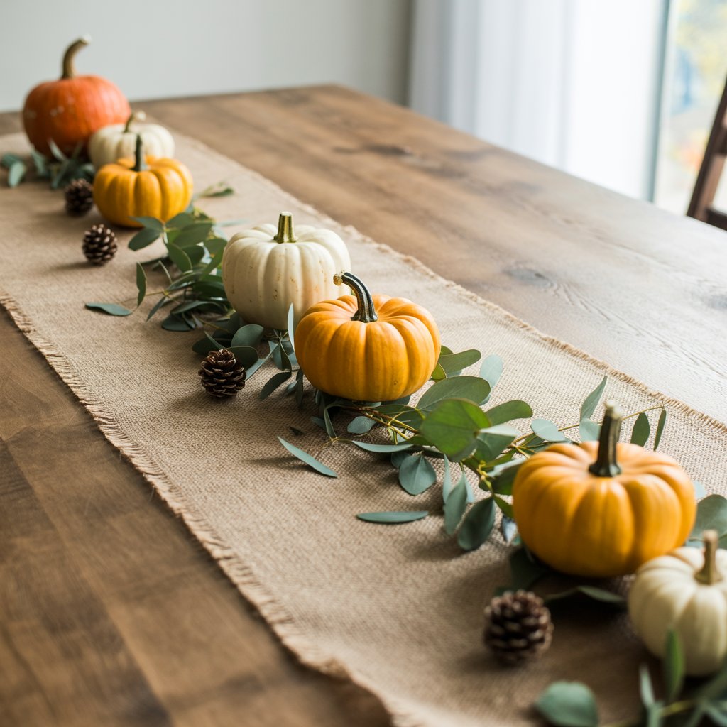 Pro tip: Layer it over a plain white tablecloth, then scatter mini pumpkins, pinecones, and eucalyptus along the center.