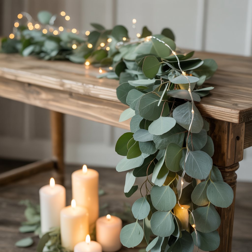 • Eucalyptus Garland with Lights – Greenery + glow.