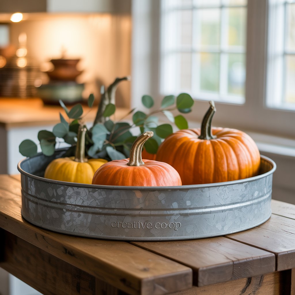 • Galvanized Metal Tray – Farmhouse serving piece.