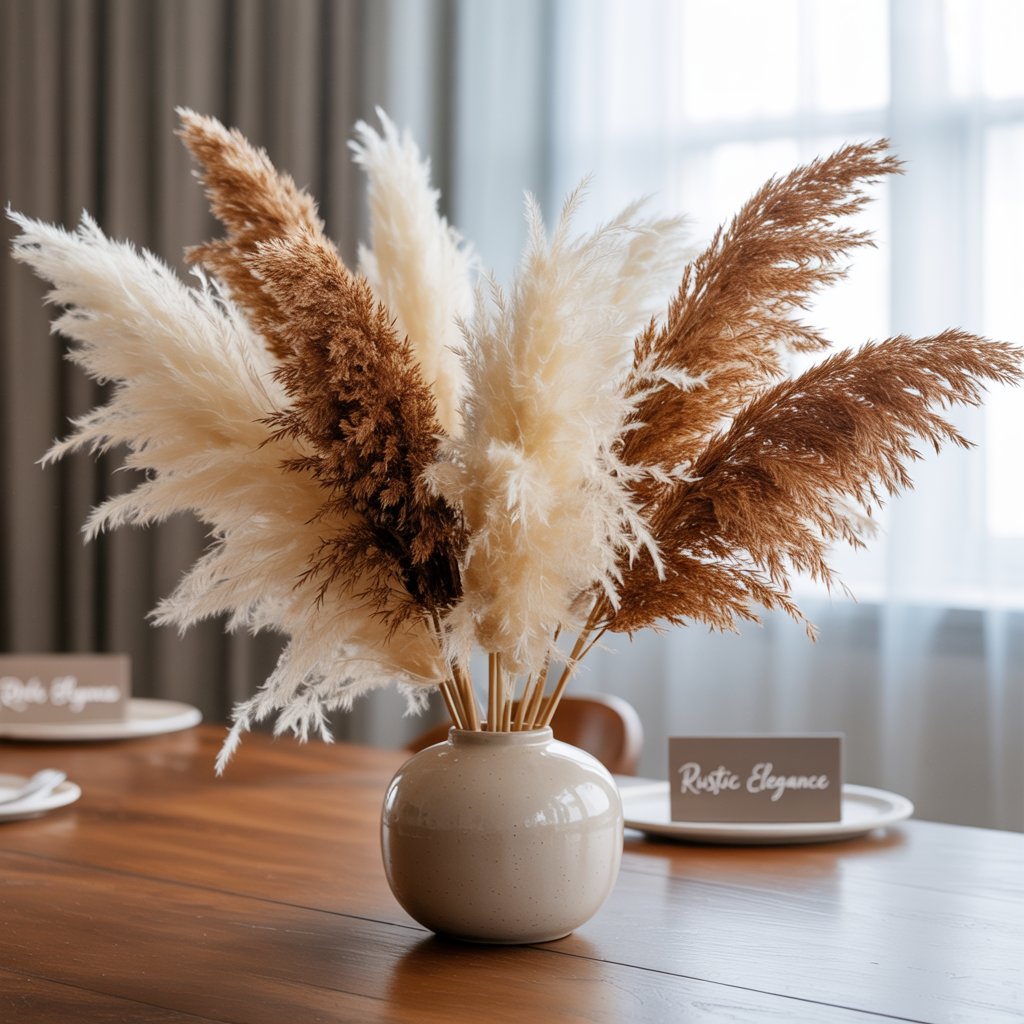 Why it works: Pampas grass adds height, texture, and a neutral elegance.