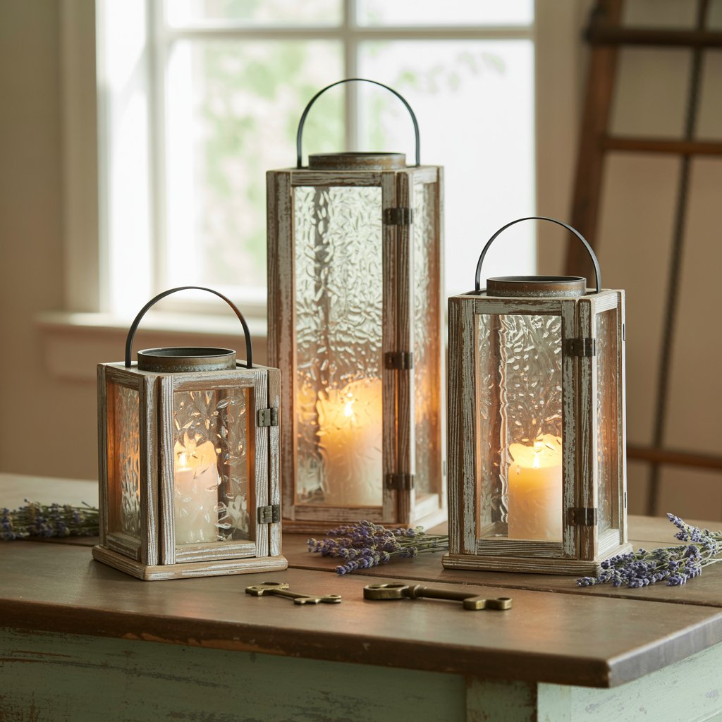 • Rustic Wooden Lantern – Warm, glowing centerpiece.