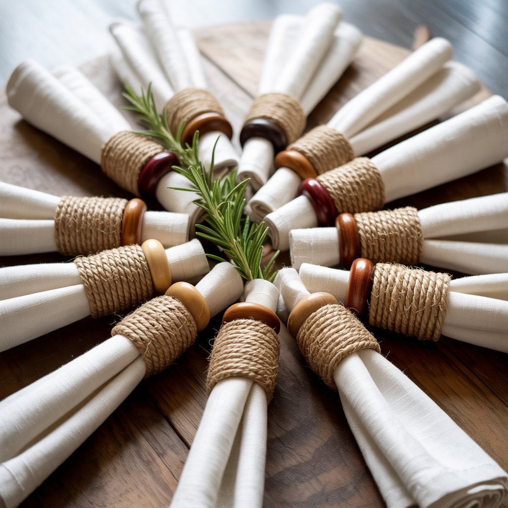 Amazon pick: Set of 12 Twine Napkin Rings with Wooden Beads — handmade look without the DIY mess.