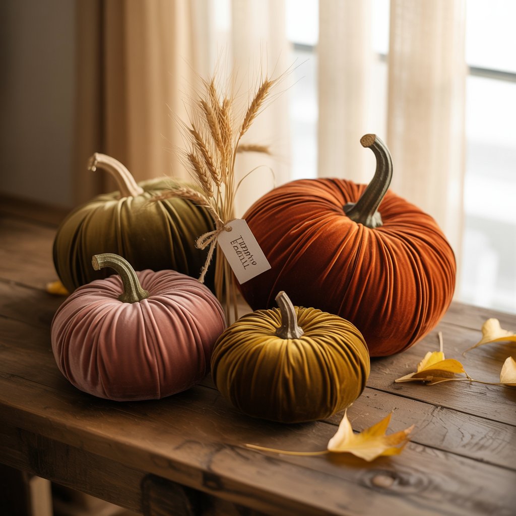 Amazon pick: Winlyn Assorted Small Faux Rustic Harvest Velvet Pumpkins — rust, gold, and olive tones that scream fall.