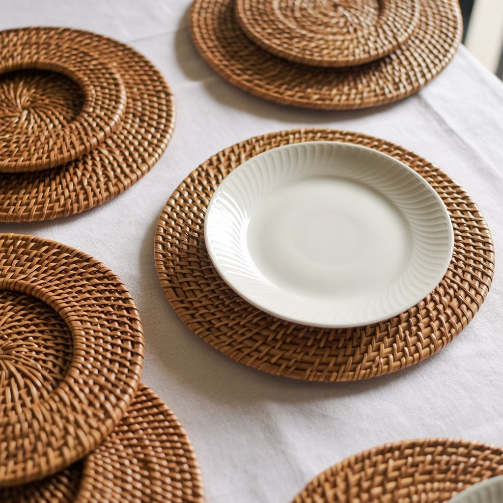 Amazon pick: Set of 6 Woven Rattan Charger Plates — sturdy and stylish.