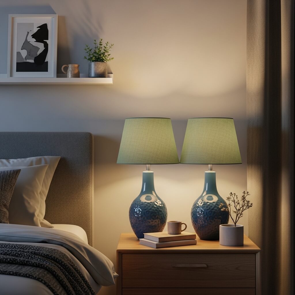 6. Blue Lamps With Sage Green Shades