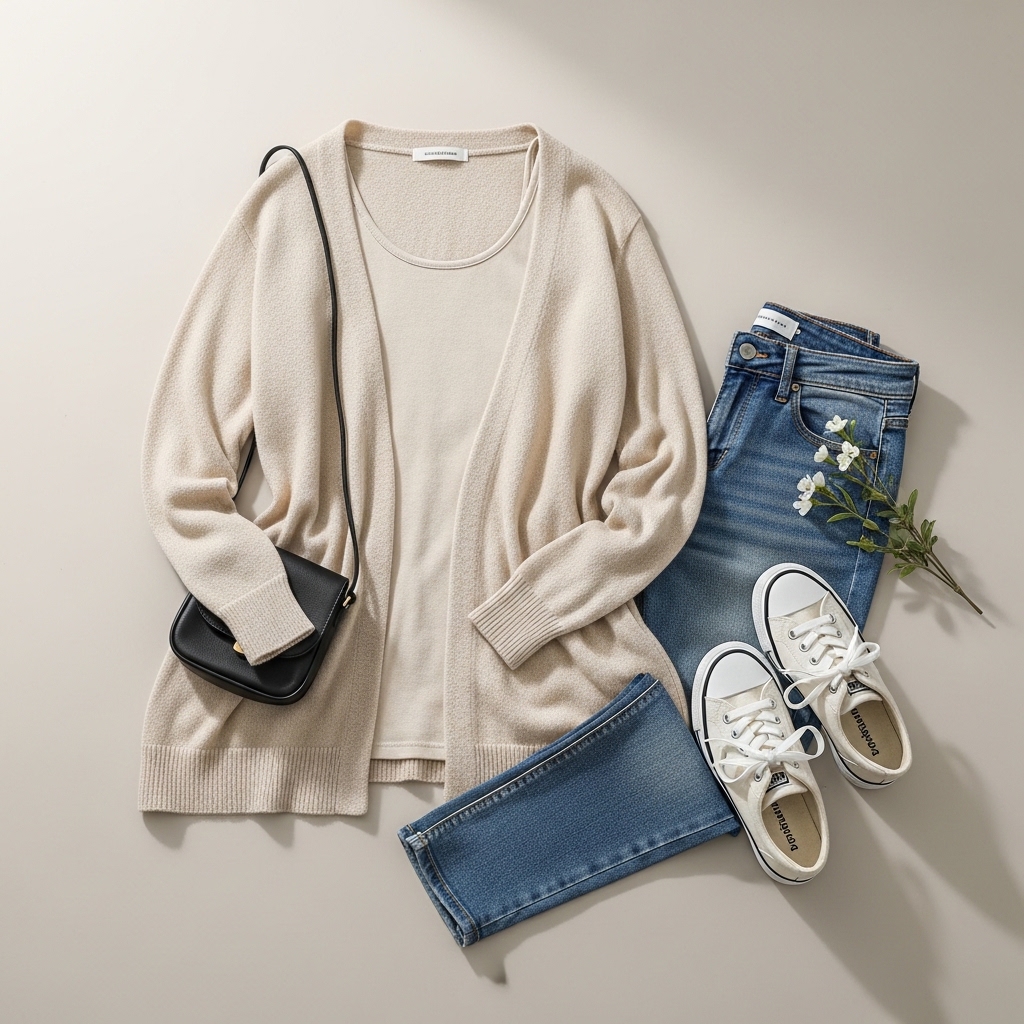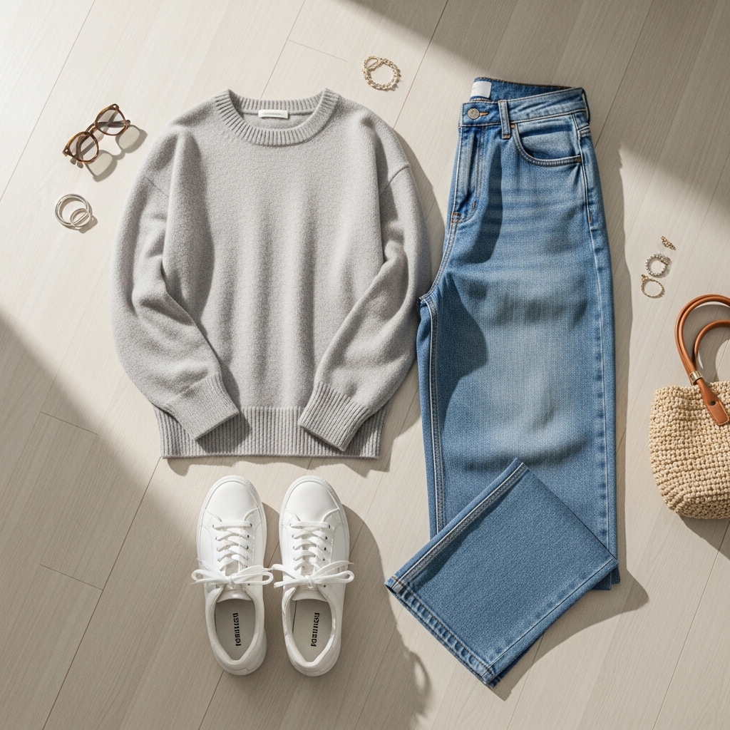 This combo saves me on those weird warm but chilly days. I wear a light sweater with relaxed jeans when I want to feel cozy without sweating. It always looks put together even when I feel lazy.