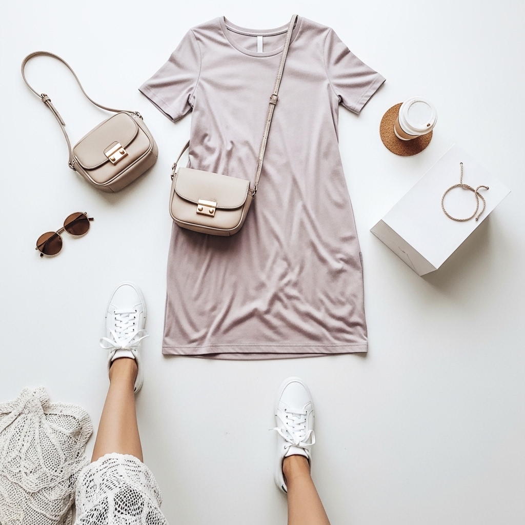 This look stays on repeat for me. I wear a simple dress with sneakers when I want to feel cute but practical. It works for walking, shopping, and brunch.