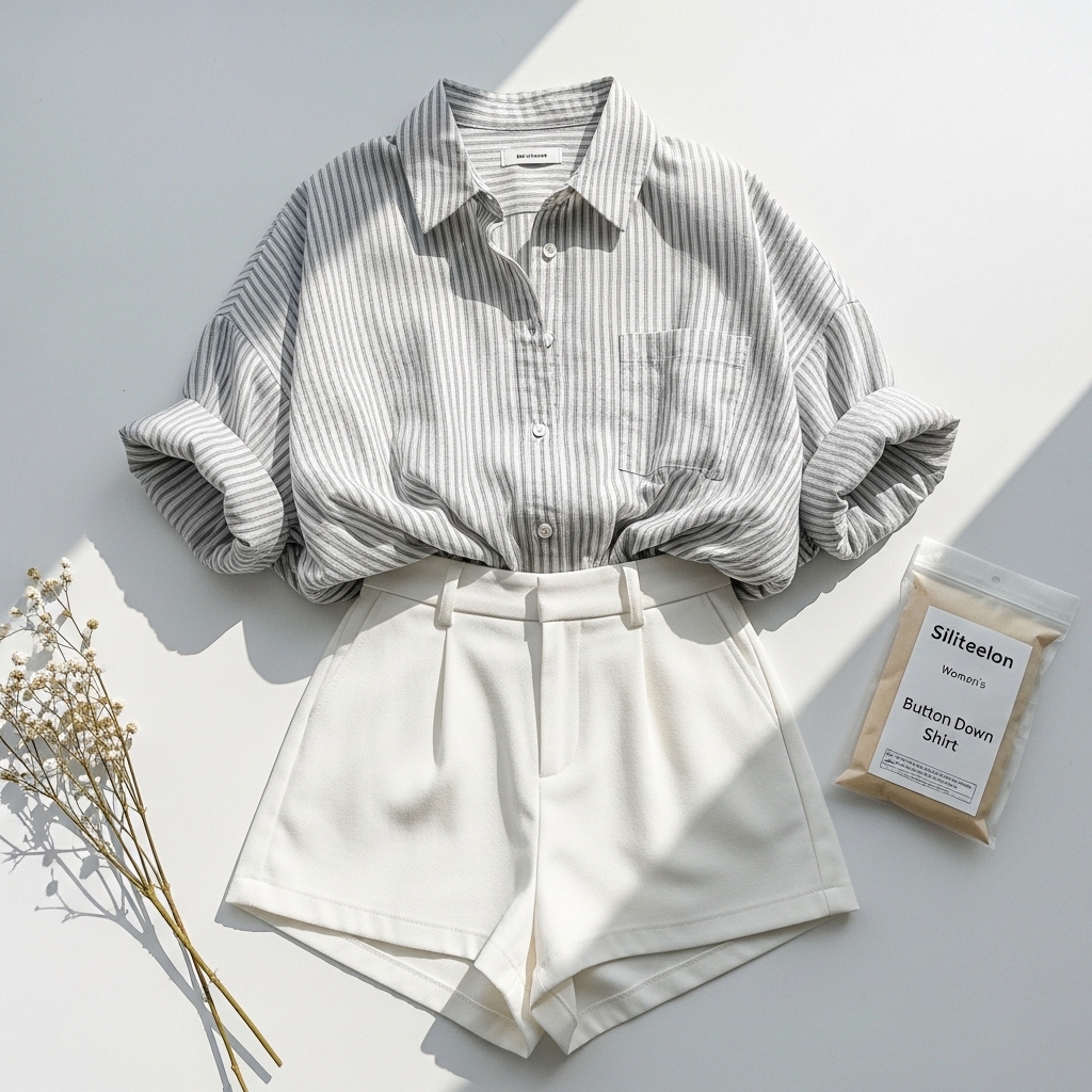 This outfit feels relaxed and clean. I love a loose button down tucked into shorts for warm spring days. It looks casual but still polished.