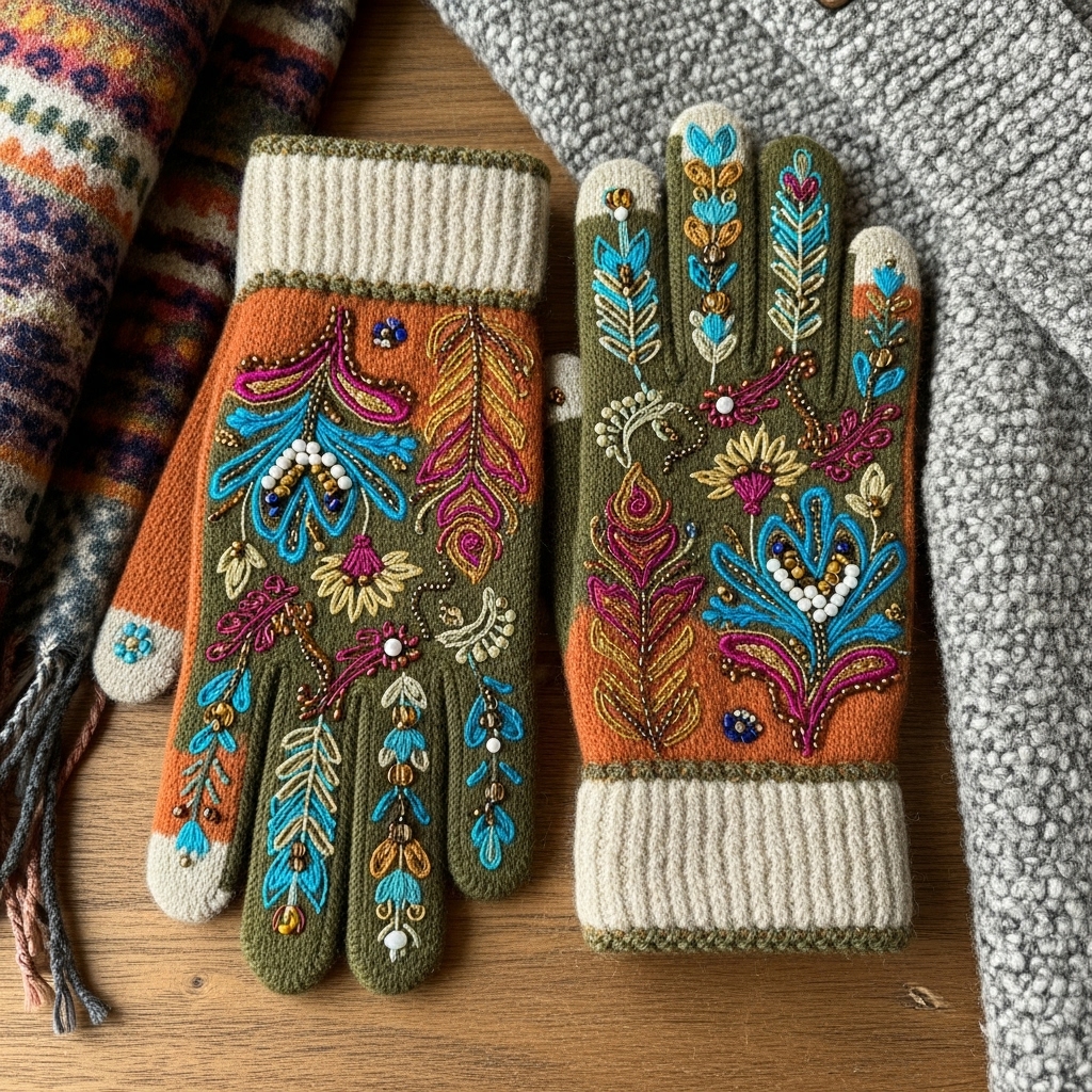 Inject some personality with gloves that have fun embroidery, colorful patterns, or subtle beading. These add an artsy, free-spirited vibe and work great with boho winter coats or scarves.