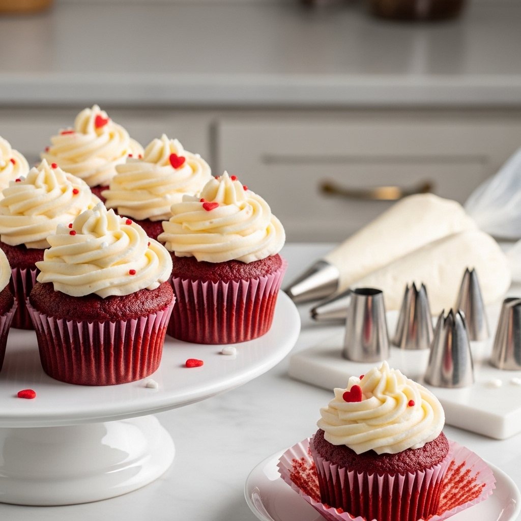 Red velvet screams Valentine’s Day. I bake cupcakes instead of cake because portions stay neat and serving feels easier.