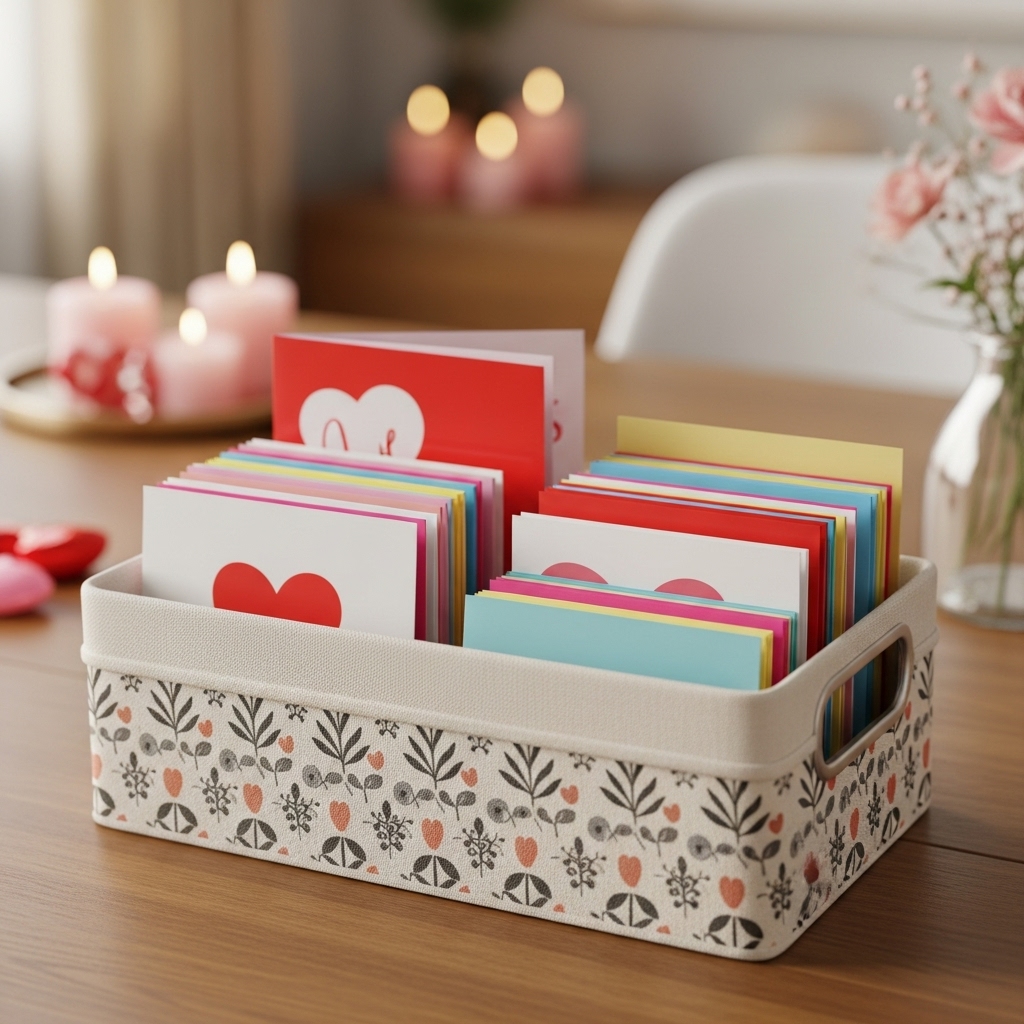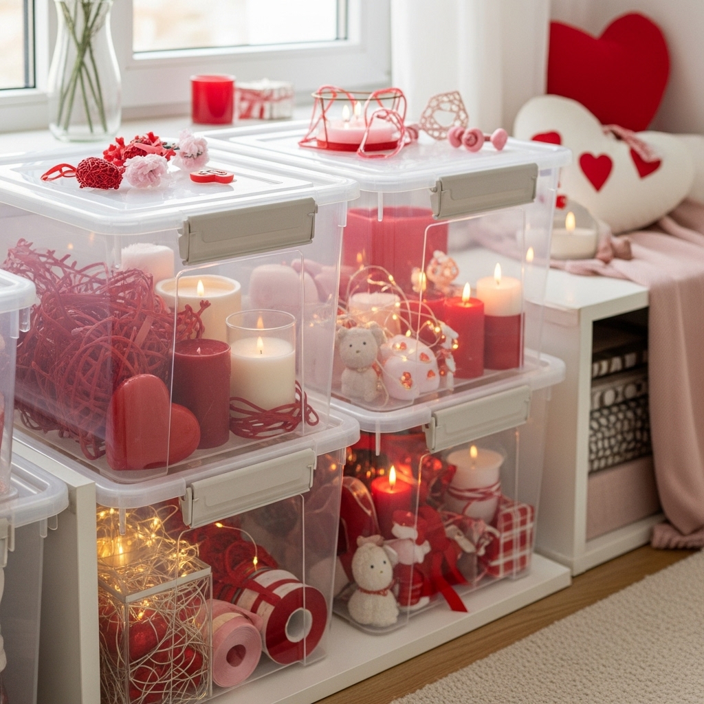 You don’t need to turn your house into a pink explosion. You just need smart storage. I group all Valentine décor in one bin so I never mix it with Christmas stuff again.