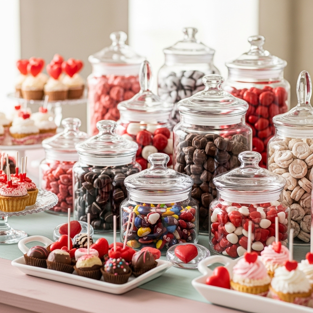 Valentine’s treats always look cuter when they sit in neat containers. I hate digging through messy bags, so I pour everything into jars or trays.