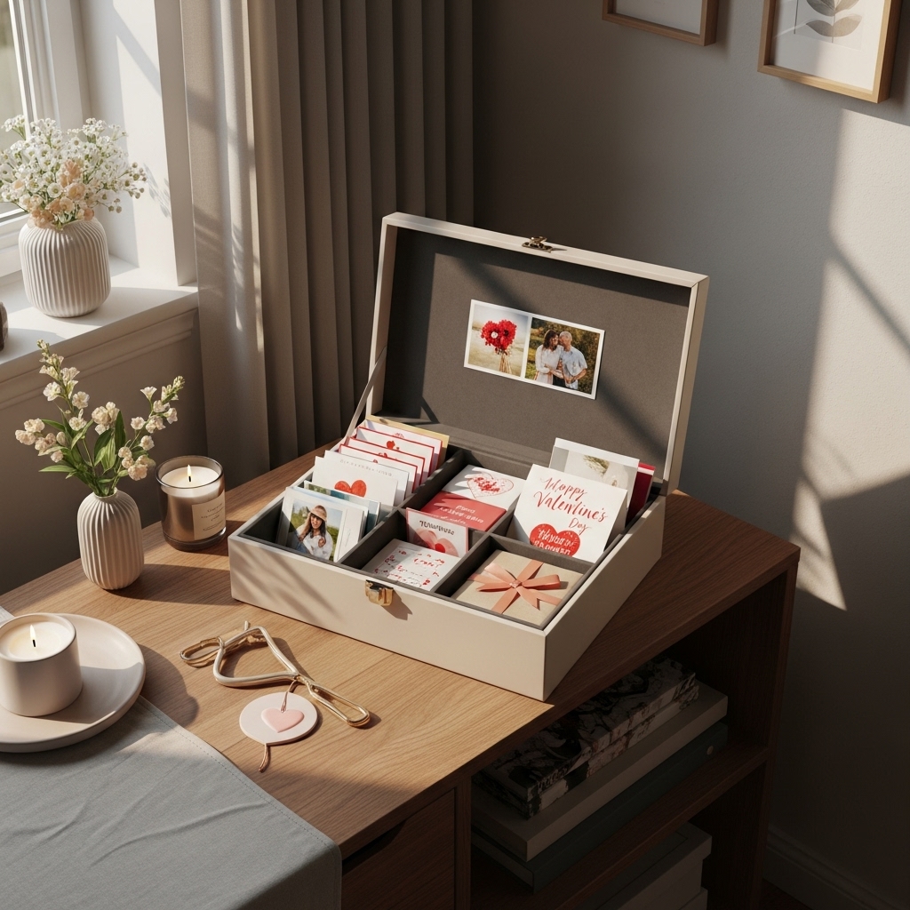 After Valentine’s Day, you want to keep the memories without keeping the mess. I store photos, cards, and notes in one box.