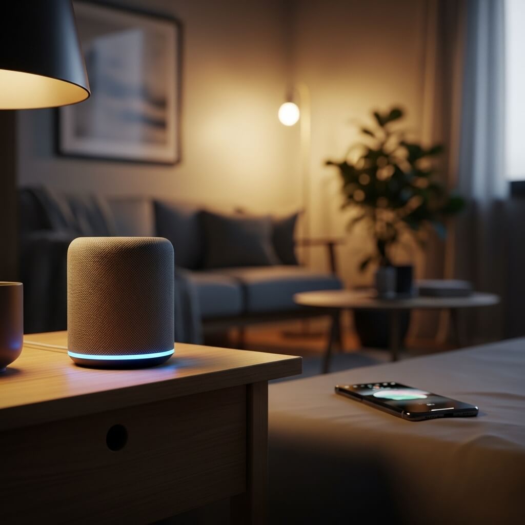 This one feels modern and slightly impressive. You walk in, say something, and boom… music plays.