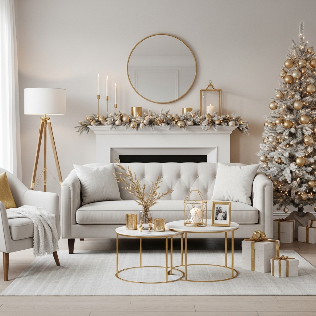 White keeps things light and airy, while gold adds that holiday shimmer without overwhelming the space. It’s basically what happens when “minimalist” and “festive” shake hands.